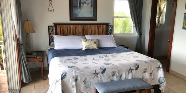 The accommodations are the main house with a private swimming pool and wrap around deck, all on the second floor. The villa has two bedrooms. Master has king bed and 2nd bedroom has queen size bed, each bedroom is air conditioned. The lookout room on the third floor has a full size bed. The well equipped kitchen and living area have views of Taylor Bay. Casa de Isle has an easy 4 minute walk to Taylor Bay Beach and the Sunset Bay Tennis Courts. Private security every night in our neighborhood of Ocean Point / Sunset Bay.